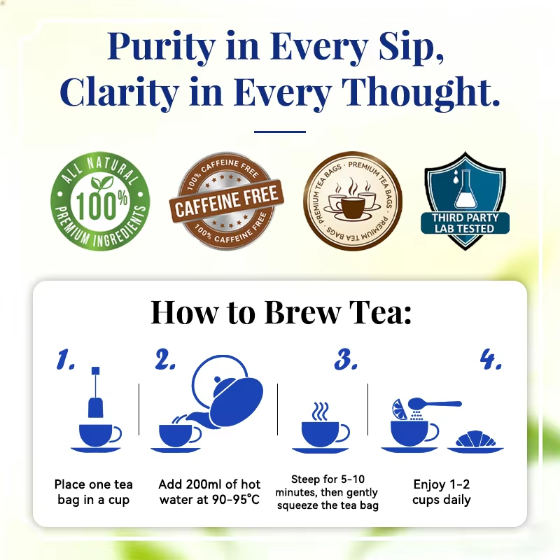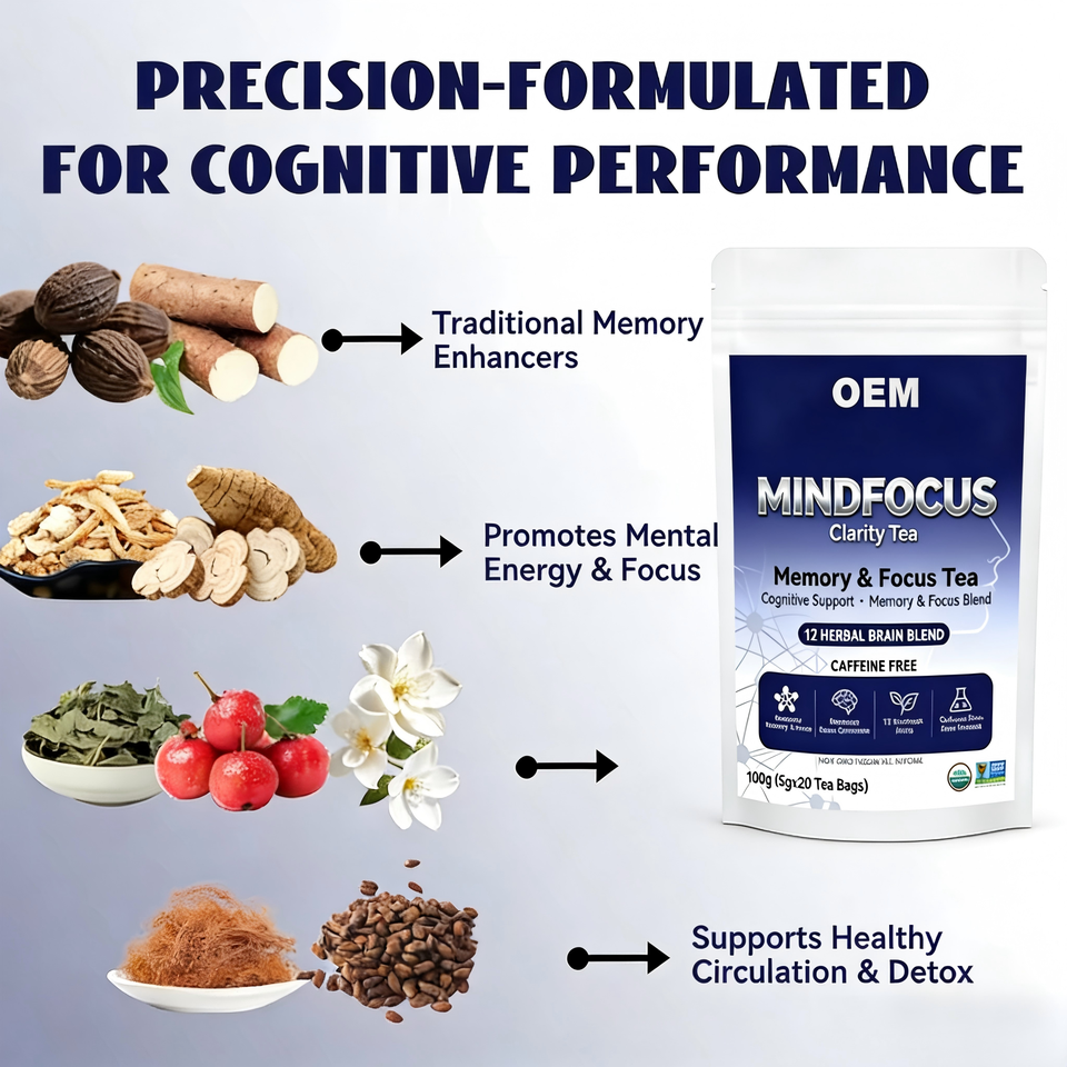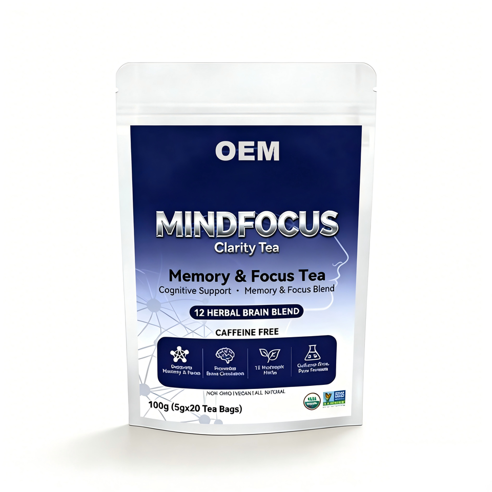Té MINDFOCUS Clarity Memory Focus OEM, Mezcla de 12 Hierbas para el Cerebro, Apoyo Cognitivo, Sin Cafeína, 20 Bolsitas de Té, Caja de 100g, Orgánico