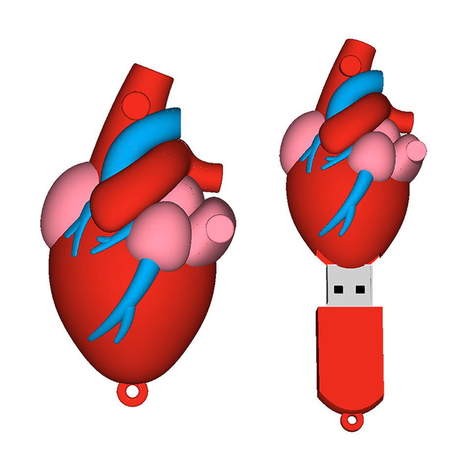 OEM Medical Heart Shape USB Flash Drive Farmacéutica Memory Stick USB 2,0 Organ Flash Drive para regalos de hospital