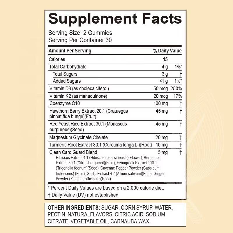 Gomitas de CoQ10 Personalizadas OEM Meelefu con Bergamota, Hibisco, Vitamina K2D3, Magnesio Glicinato y Pimienta de Cayena para la Salud del Corazón