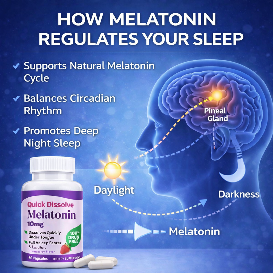 Cápsulas de Melatonina OEM de 10 mg de Disolución Rápida, Suplemento Sublingual para Dormir, 100% Libre de Drogas, 60 Unidades
