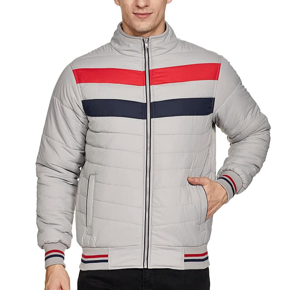 Chaqueta de plumón OEM para hombre, Abrigo acolchado con manga larga y cuello levantado europeo personalizado con cierre de cremallera, abrigo aislado
