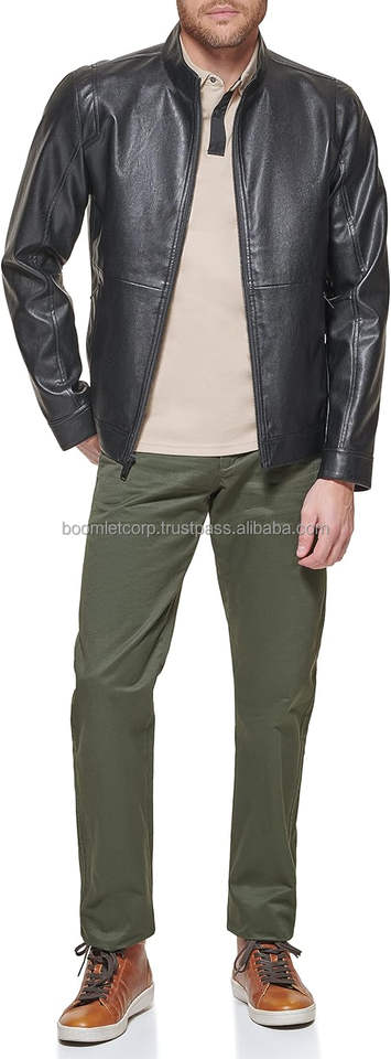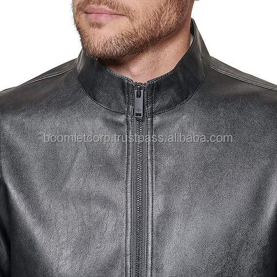 Chaqueta de motorista para hombre OEM de Boomletcorp, cuero con logotipo personalizado y cuello vuelto de alta calidad, a prueba de viento para carreras