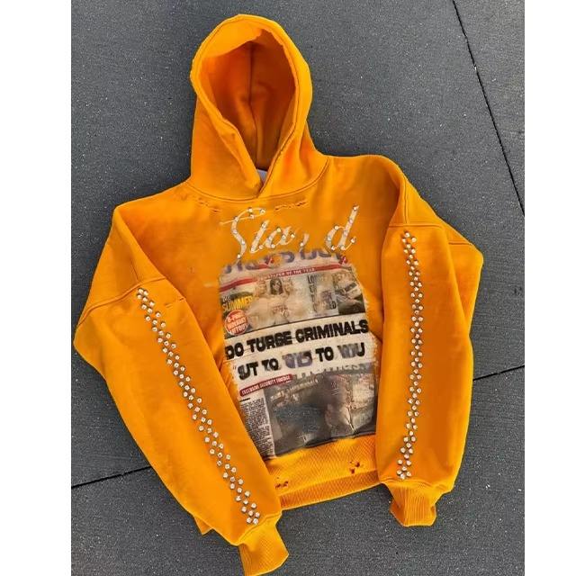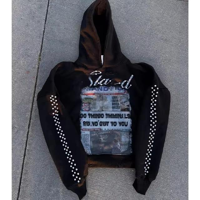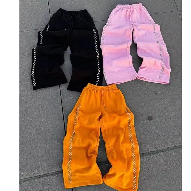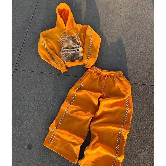 Conjunto de Sudadera con Capucha y Pantalones Deportivos con Pedrería para Hombre, Diseño Personalizado con Serigrafía y Lavado, Estilo Deportivo para Invierno