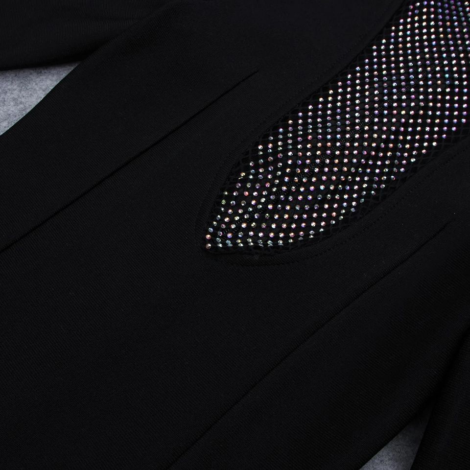 1 pcs of OEM Mesh Rhinestone Long Sleeve Black Vestidos Elegante Cocktail Dress Club Outfits For Women Sexy Dresses Gala Bodycon Dress in a poly bag
