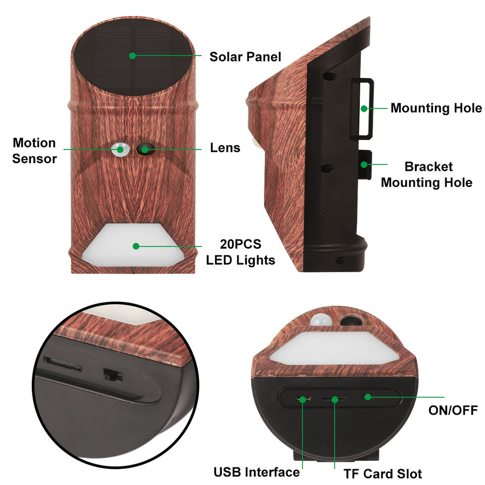Cámara Oculta Mini Solar Inalámbrica OEM con Tecnología Infrarroja 12MP IP54 Impermeable Grabación en Bucle para Seguridad del Hogar, Camping y Jardín
