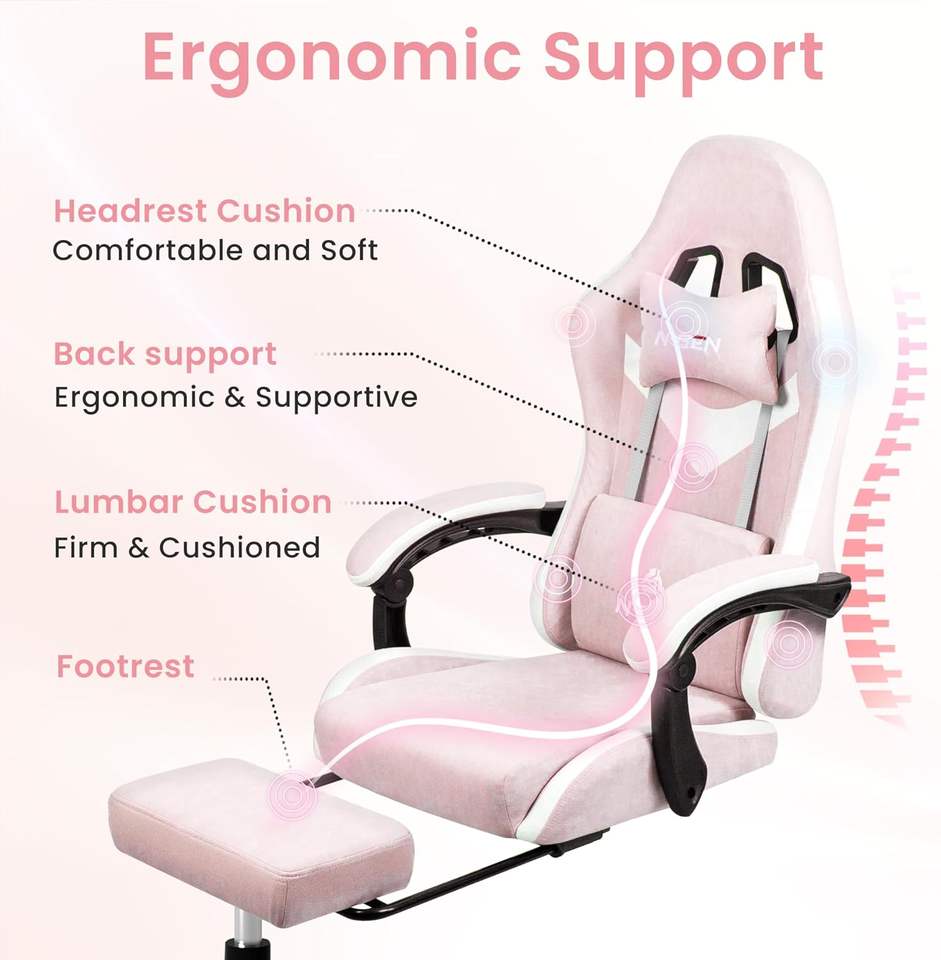 Nombre del Producto:Silla de escritorio para oficina en casa Lovely, sillas gaming rosas con reposapiés