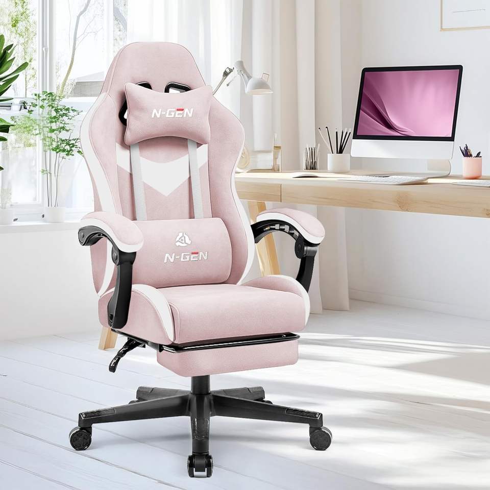 Silla de escritorio para oficina en casa Lovely, sillas gaming rosas con reposapiés