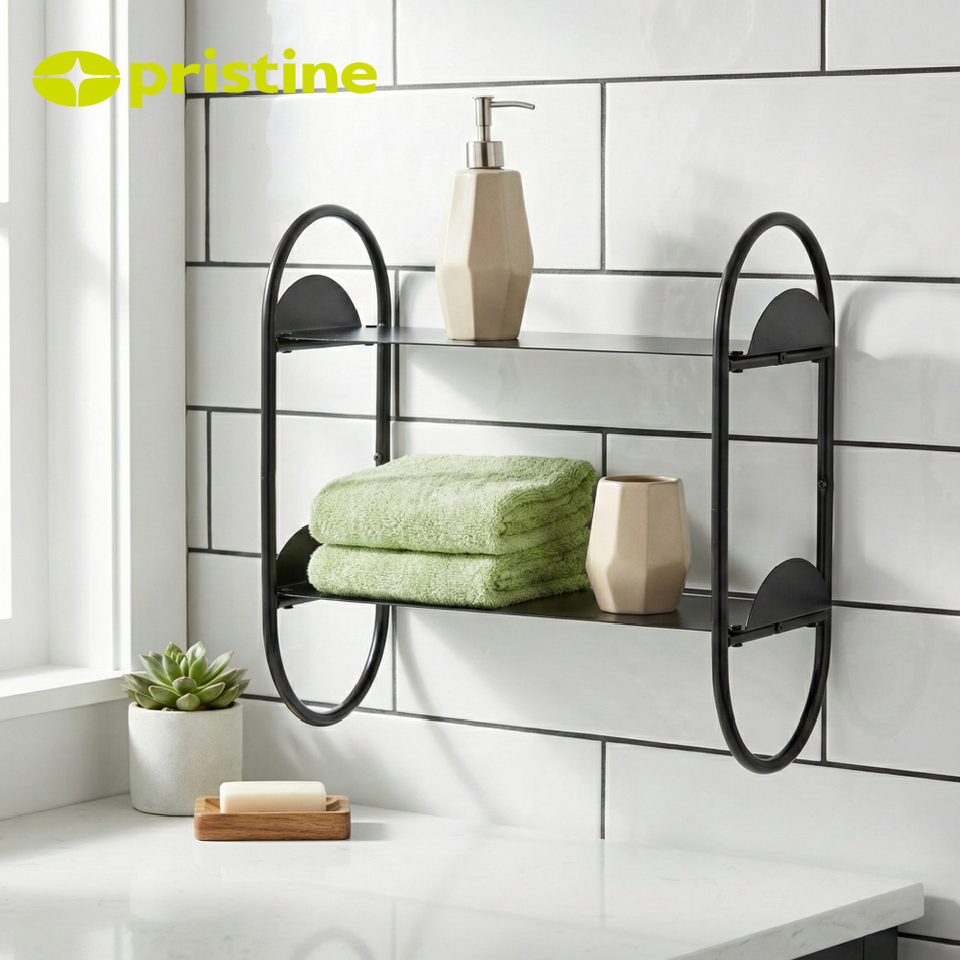 Estante de Pared Metálico de 2 Niveles con Diseño Moderno OEM, Organizador de Almacenamiento para el Hogar, para Sala de Estar, Baño, Hotel, Taller