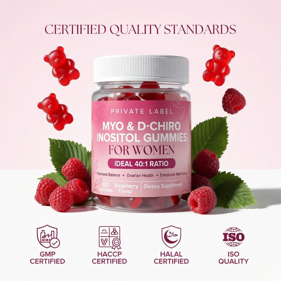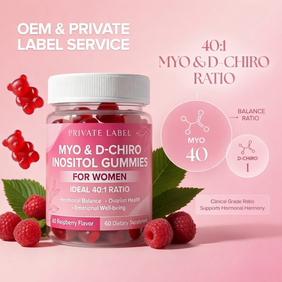 Gomitas Naturales de Mioinositol y D-Chiroinositol OEM, Relación 40:1, Suplemento Dietético para Adultos, Fabricante de Marca Privada