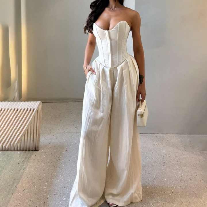 Conjunto de 2 Piezas de Primavera de Diseño OEM, Color Sólido, Lino y Algodón, Pantalones de Cintura Alta y Pierna Ancha con Bolsillo, Conjunto Casual para Mujer