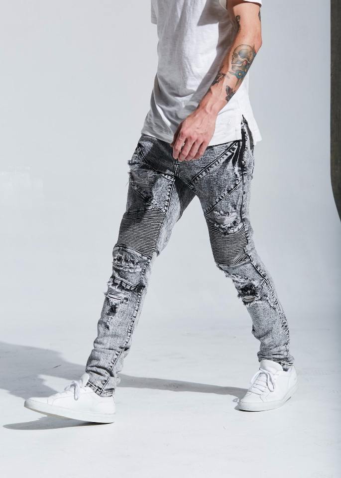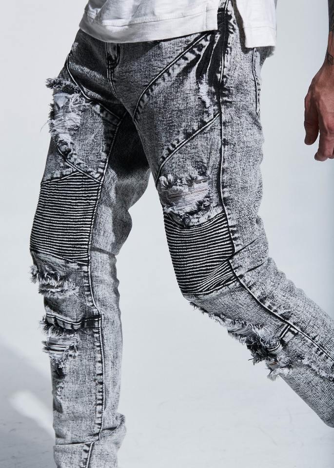 Pantalones Vaqueros Estilo Motero con Lavado Ácido Gris Desgastado, Diseño Personalizado al por Mayor, Modelo Nuevo OEM para Chicos 253