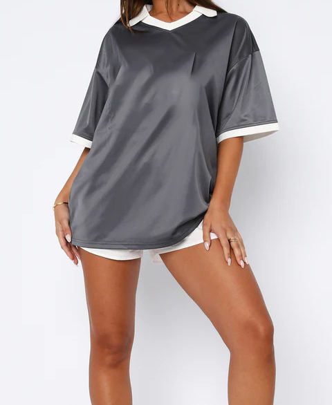 Camiseta extragrande de nuevo estilo OEM para mujer, camiseta de fútbol con cuello en V y logotipo personalizado con letras impresas, camisetas de fútbol de malla