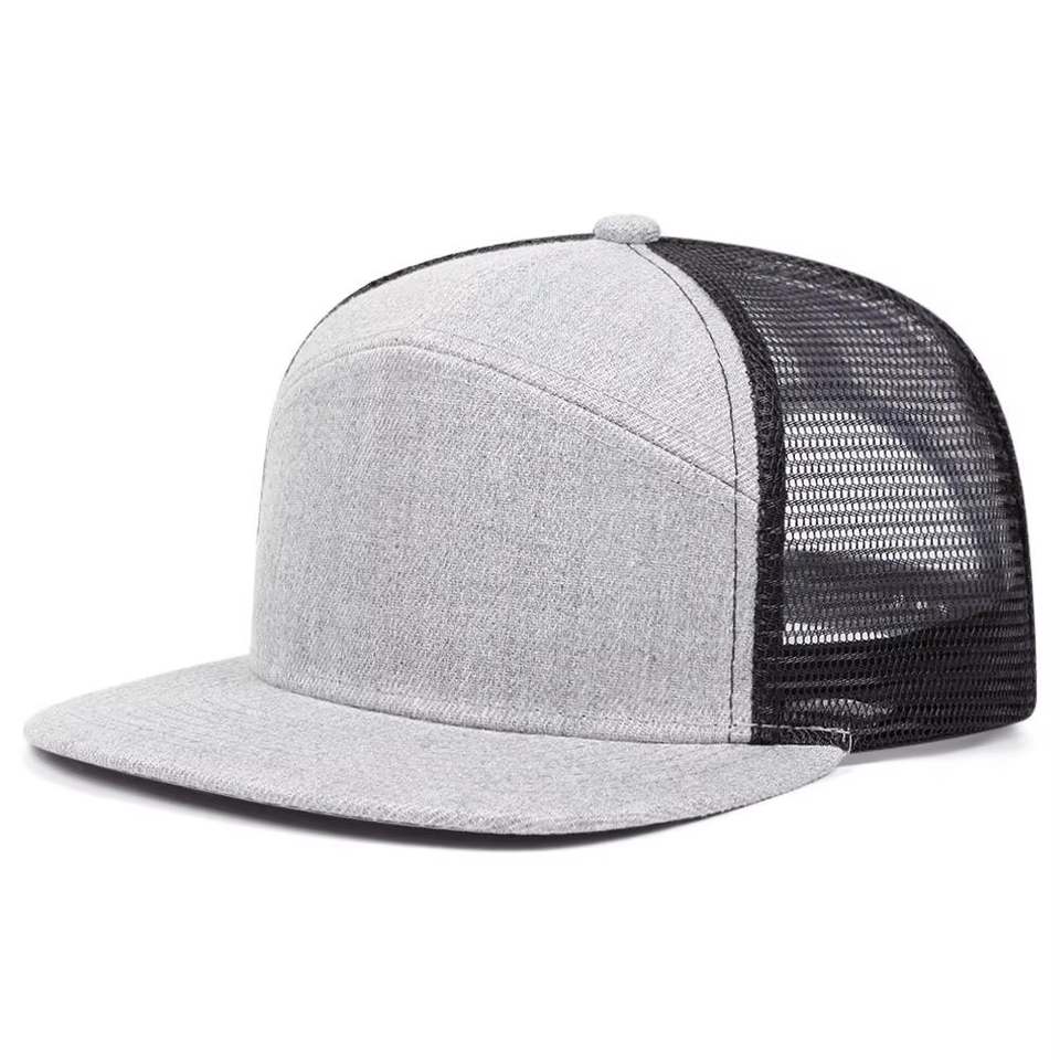 OEM nuevo logotipo personalizado al por mayor de 5 paneles de camionero de alta calidad de algodón de malla sombrero Unisex Street Style bordado