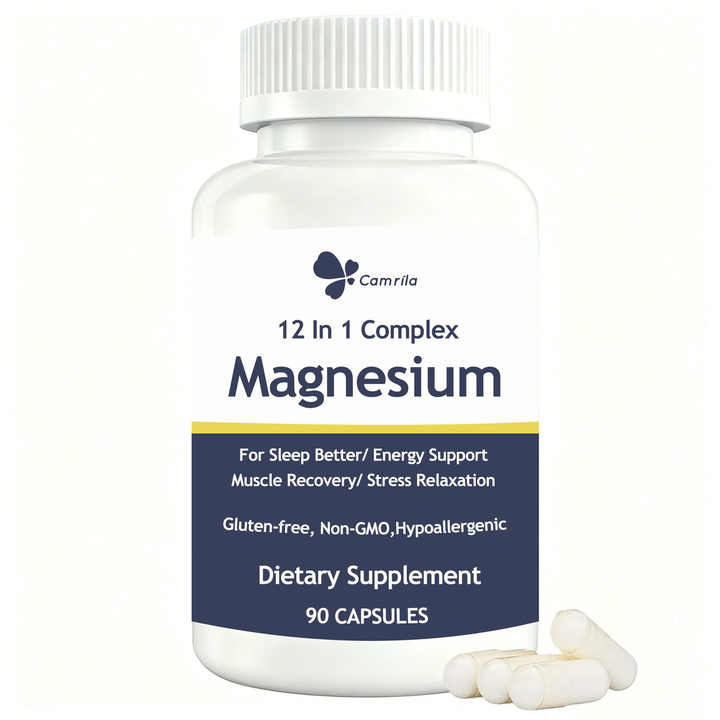 Cápsulas de Suplemento de Magnesio Complejo Sin GMO OEM, 90 Unidades, Fórmula de Magnesio Quelado 12 en 1 para la Recuperación de Músculos y Huesos, Energía