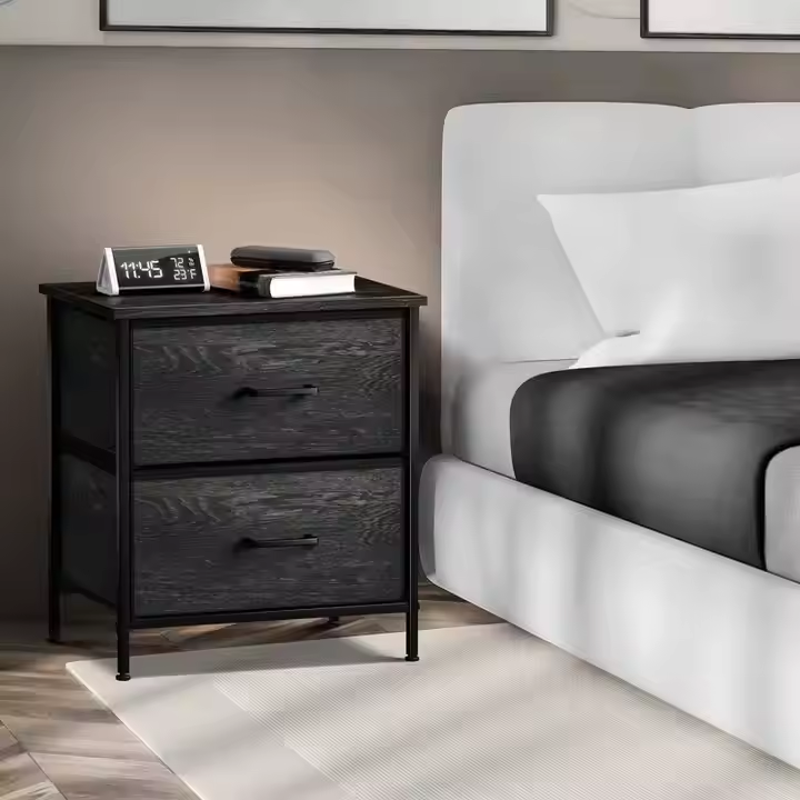Cómoda con marco de metal de 2 cajones OEM y ODM con mesita de noche superior de madera para mesas finales directas de fábrica de dormitorio