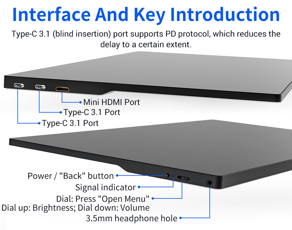 Charger:support HD-MI input, HD-MI, 2 x Type-C, 1 x mini HD-MI,