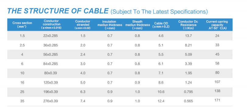 1 * 4.0mm ², 1 * 1.5mm ², 1*10,0mm ², 1 * 16.0mm ², 1 * 2.5mm ², 1 * 25.0mm ², 1 * 35.0mm ²Talla