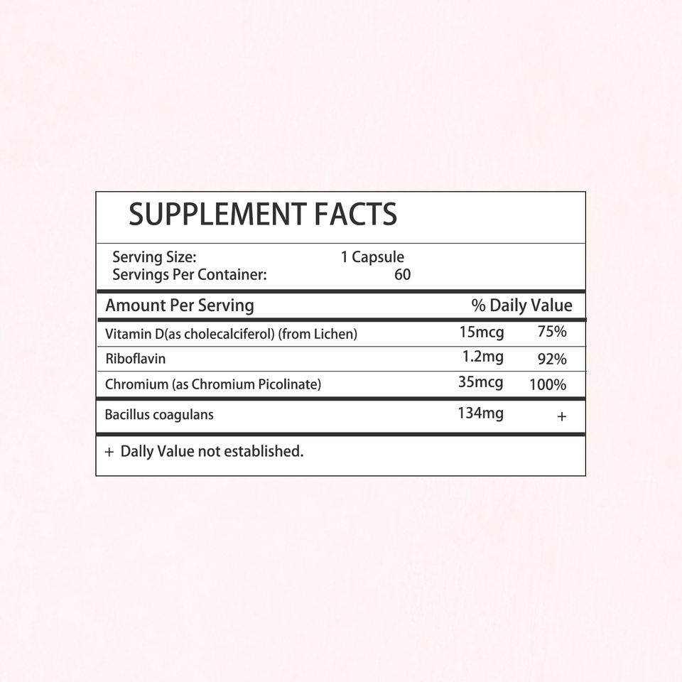 Ingrediente principal:Vitamina D, Riboflavina, Cromo, Bacillus coagulans