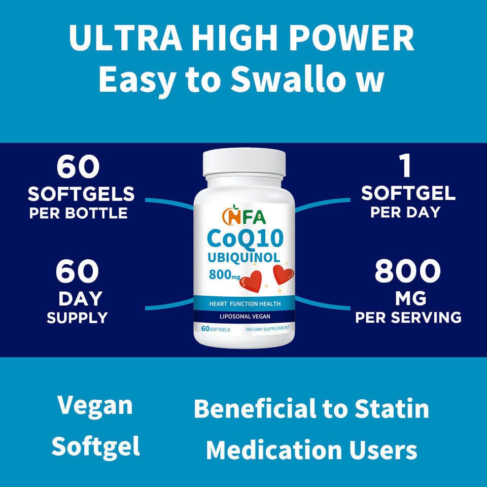 Las cápsulas blandas OEM/ODM COQ10 promueven la fuerza muscular y ósea formuladas para mujeres y hombres COQ10 ubiquinol 800mg cápsulas blandas
