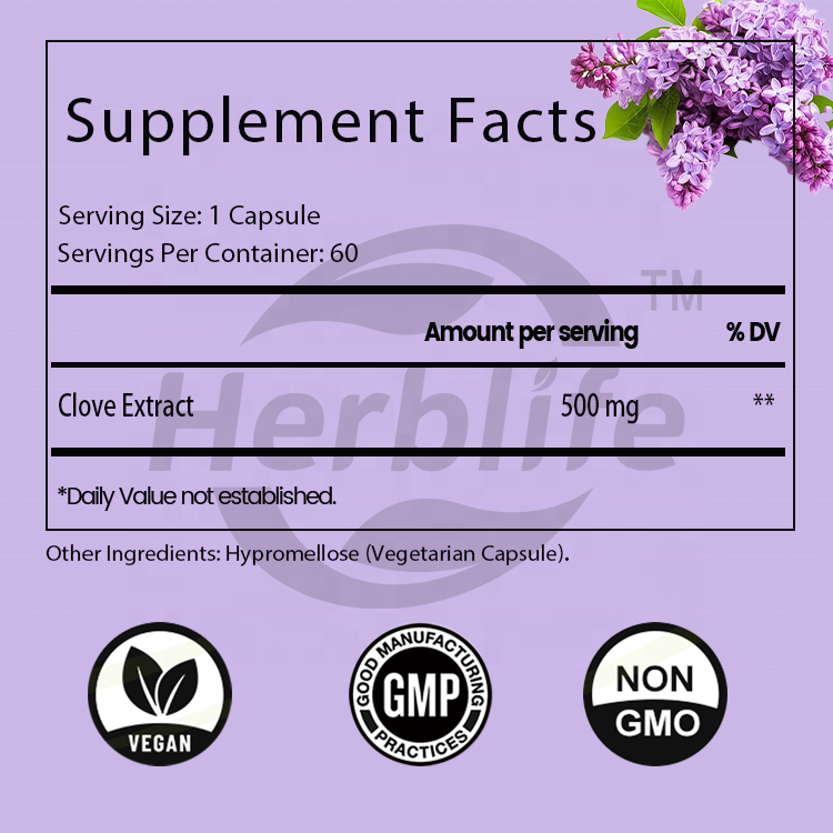 Cápsulas de Extracto de Clavo OEM ODM - Favorecen la Salud Intestinal, Apoyan la Salud Inmunológica, Apoyo Digestivo, Antioxidantes, Veganas, Personalizables