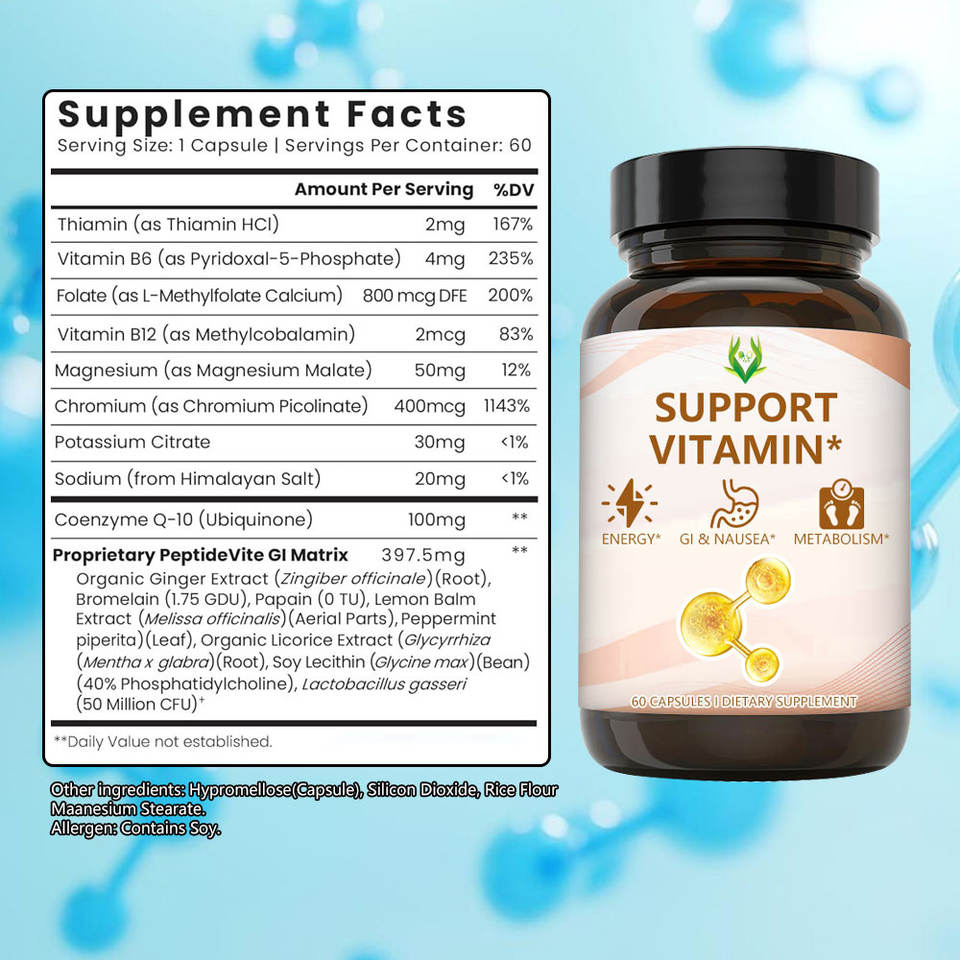 Coenzima Q10', Magnesio, Sodio, Cromo, Vitamina B12, Folato, Tiamina, Vitamina B6, Propiedad Petidevite GI MatrixIngrediente principal