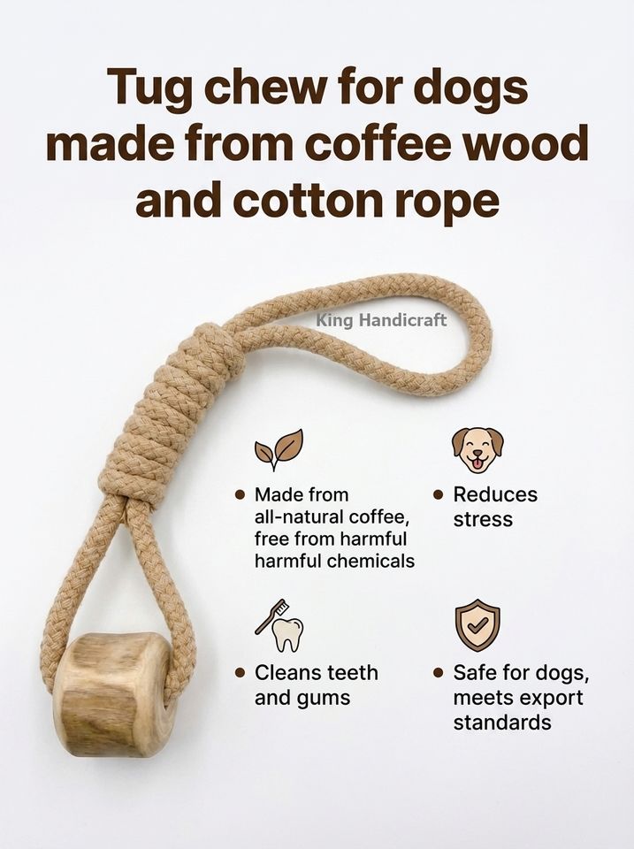 Juguete de Madera de Café con Cuerda de Algodón para Perros, Diseño Moderno, Resistente, para Masticar y Entrenar, de Vietnam, OEM ODM