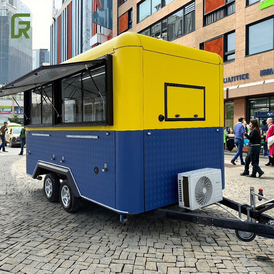Remolque de comida móvil cuadrado retro color personalizado OEM y ODM camión comercial uso al aire libre Europa caravana restaurante