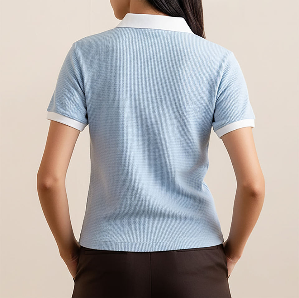 Camiseta polo de algodón y poliéster con cuello vuelto, diseño personalizado OEM/ODM para mujer, manga corta, corte relajado, estilo clásico.