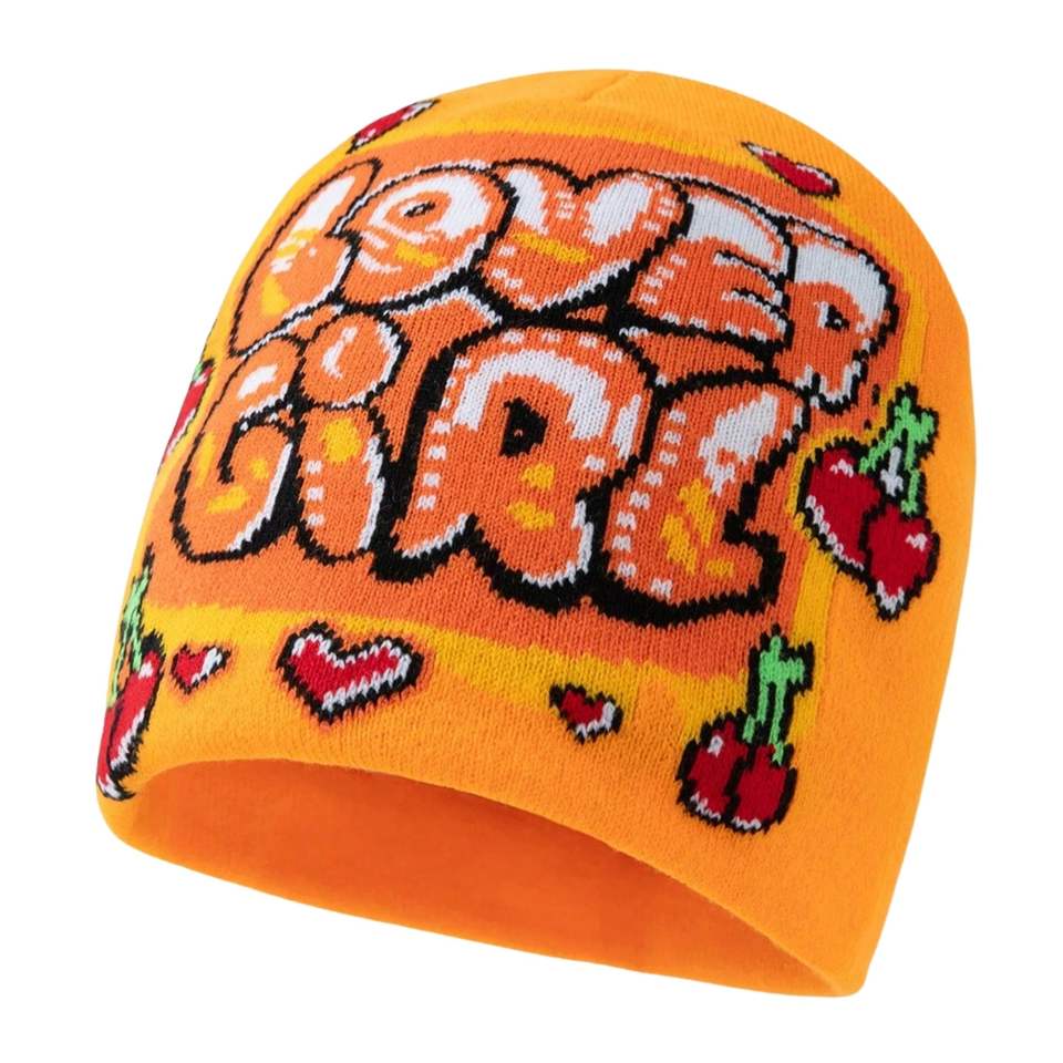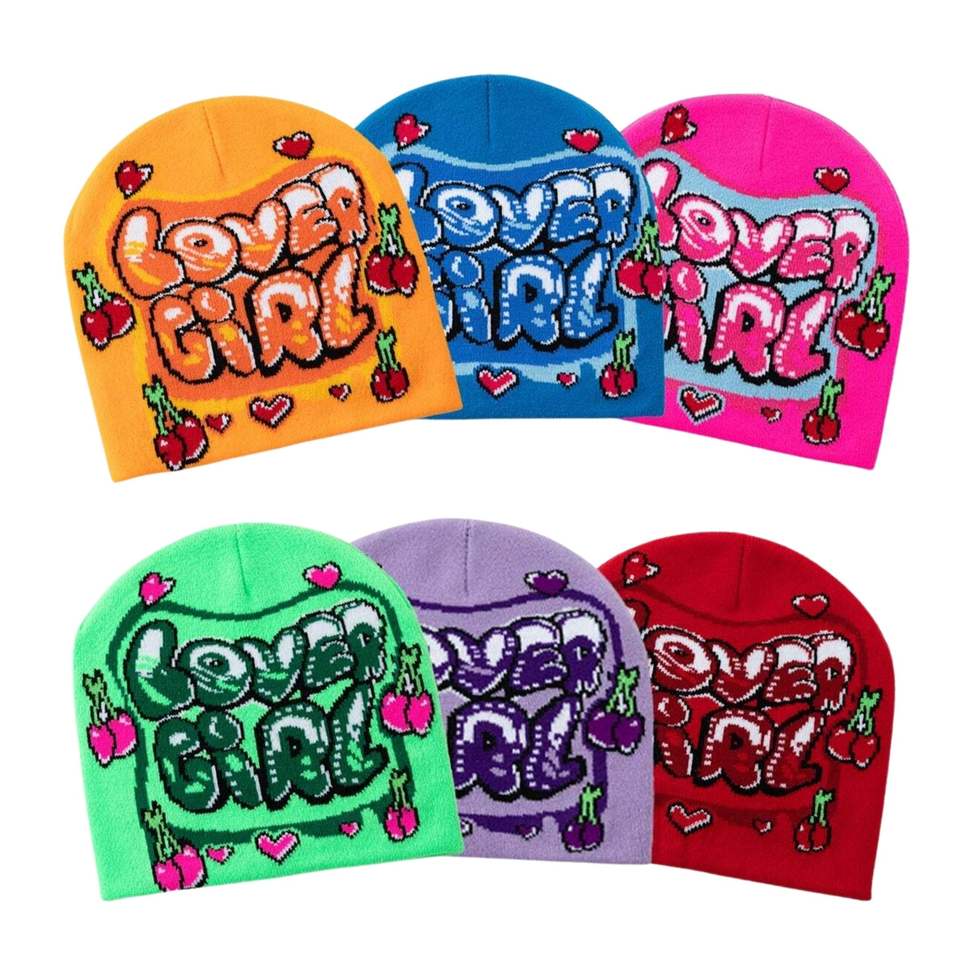 Gorros de punto sublimados con diseño personalizado OEM/ODM, gorros elásticos de algodón jacquard con logotipo bordado y lazos de frutas personalizados