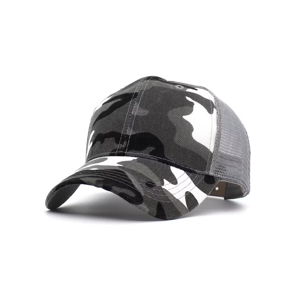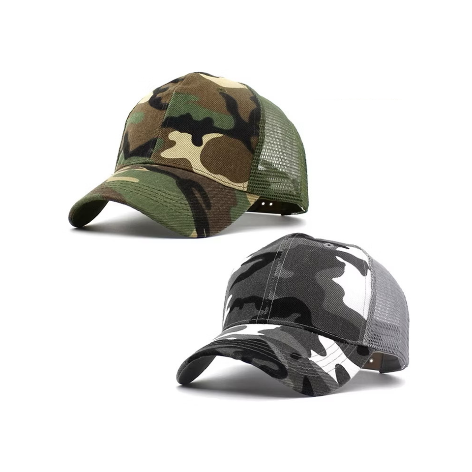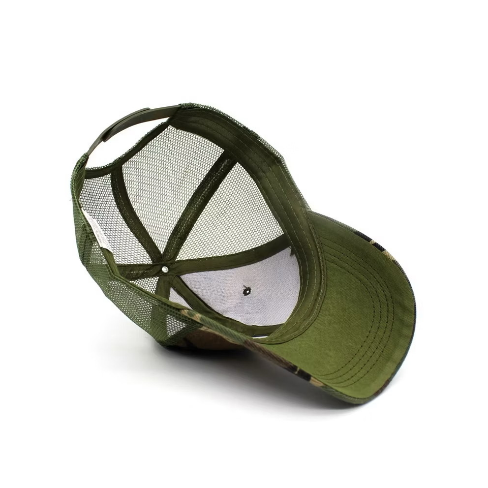 Gorra de camionero de camuflaje de 6 paneles con logotipo personalizado OEM y ODM, gorra de béisbol con espalda de malla curvada para deportes al aire libre, proveedor de Vietnam