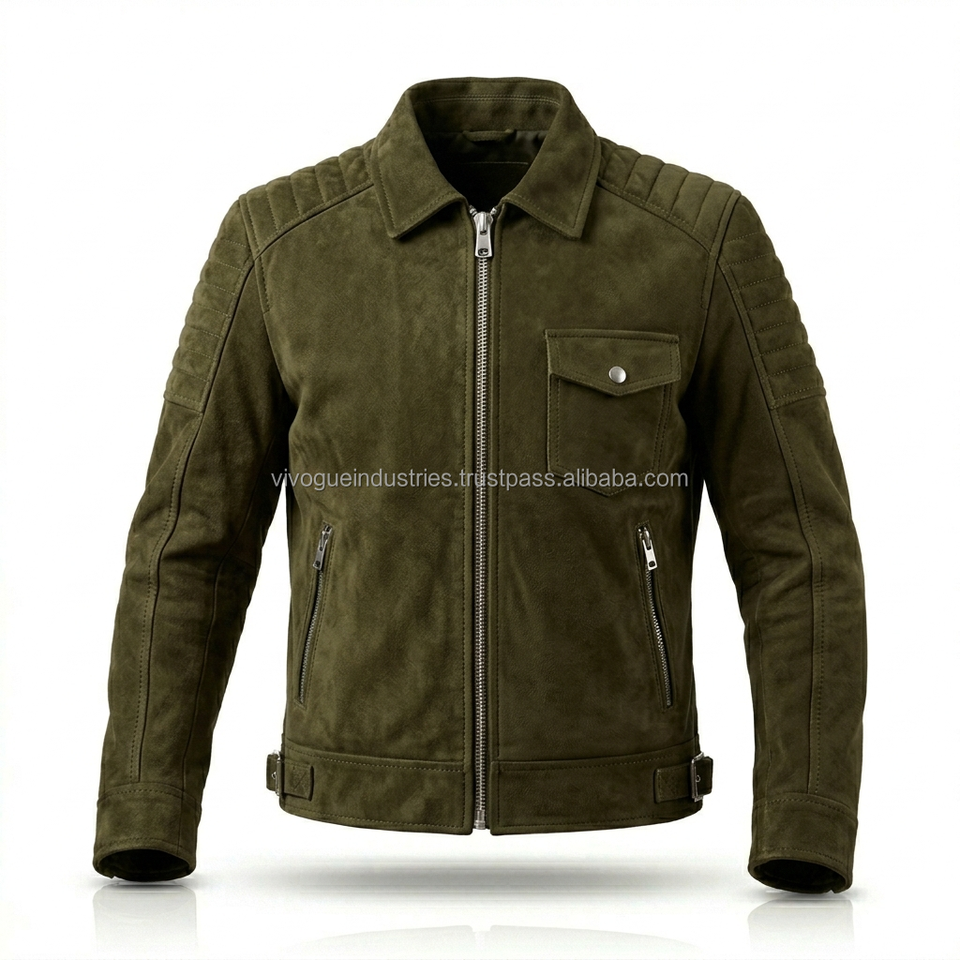 Chaqueta de Cuero de Oveja Genuina para Hombre, con Logotipo Personalizado OEM/ODM, de Alta Calidad, con Cuello Camisero, Estilo Motero