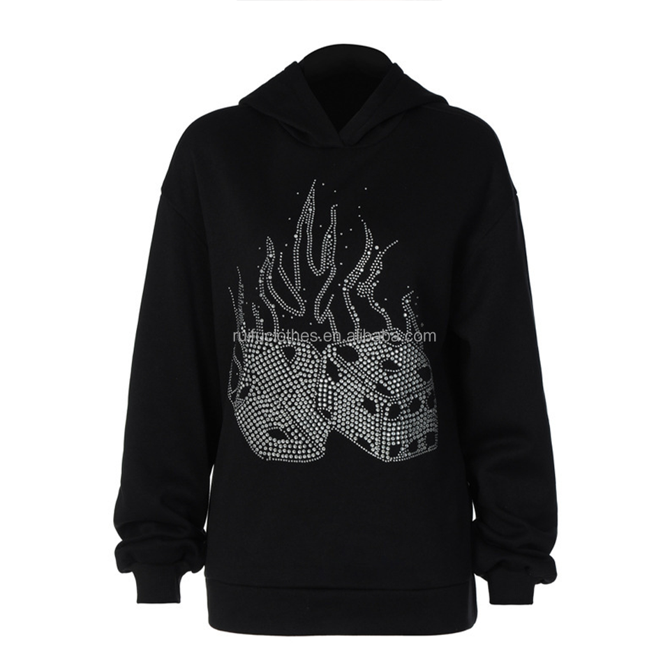 Sudadera con capucha de lujo personalizada OEM ODM con pedrería, bordado 3D en relieve, estampado, estilo urbano, de algodón, oversize, para hombre