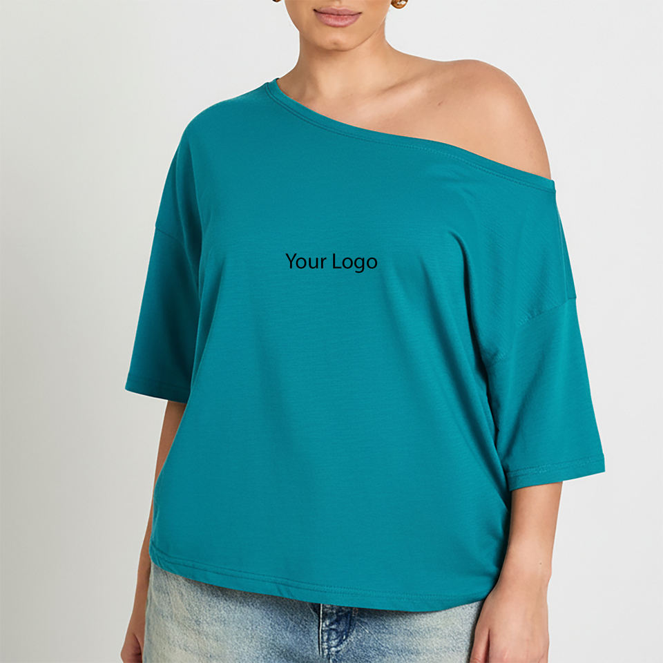 Camiseta de Gran Tamaño con Hombros Descubiertos, 100% Algodón Jersey, Personalizada OEM/ODM, Ropa de Verano Transpirable de Manga Corta para Mujer