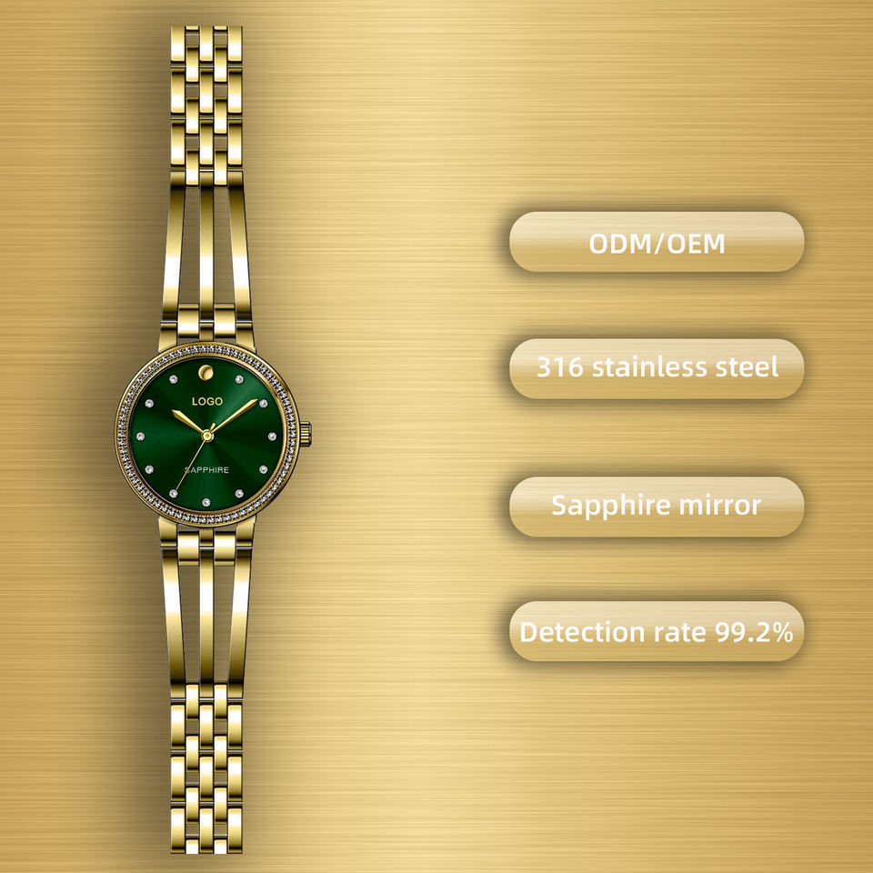 OEM ODM personalizado marca privada diseño único de acero inoxidable mujeres relojes de cristal de zafiro reloj de cuarzo para las señoras de esfera pequeña
