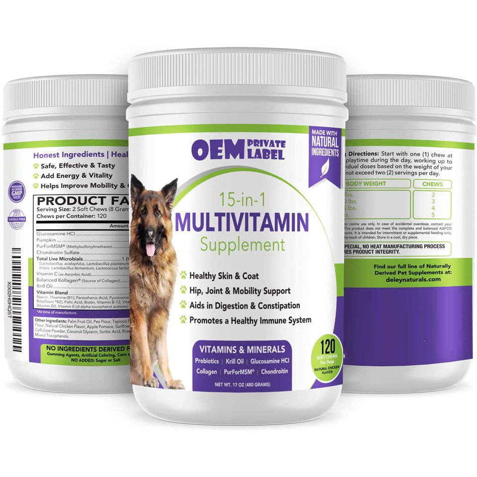 Suplemento multivitamínico y mineral para mascotas masticables suaves con sabor delicioso 50 por 1 para perros y gatos de calidad personalizada OEM/ODM