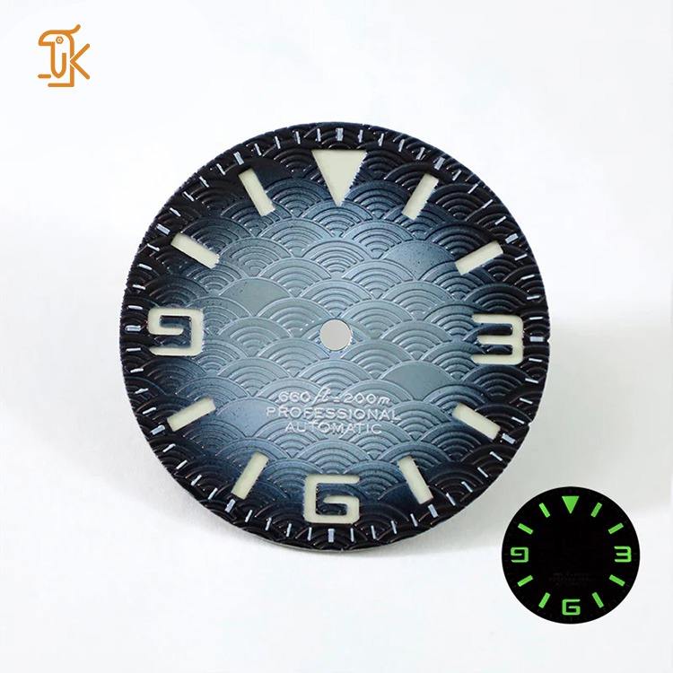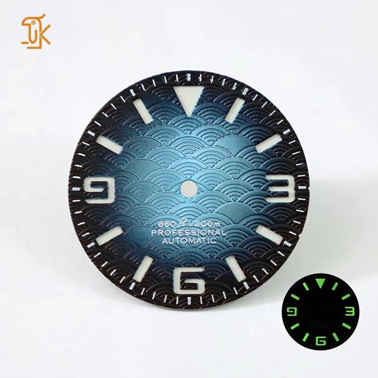 Esfera de Reloj de Latón con Color Degradado y Logotipo Personalizado OEM/ODM, con Marcadores Luminosos y Patrón Seigaiha para Piezas de Relojes de Movimiento Automático