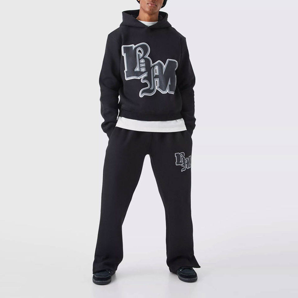 Conjuntos de Sudadera con Capucha y Pantalones Deportivos con Parches Bordados con Logotipo Personalizado OEM ODM, Ropa Deportiva Urbana, Envío Directo desde Almacén