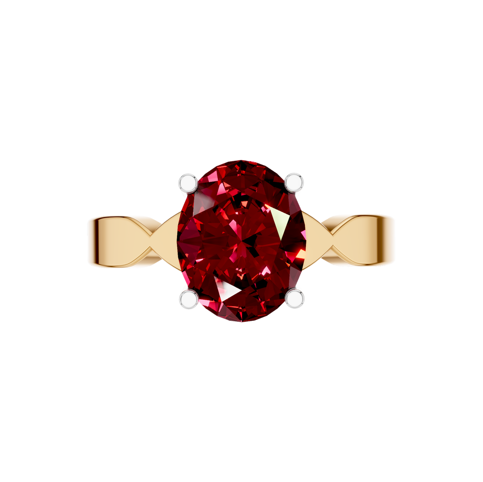 Estilo:Anillo con Gema Cultivada en Laboratorio de Rubí y Engaste de Bisel