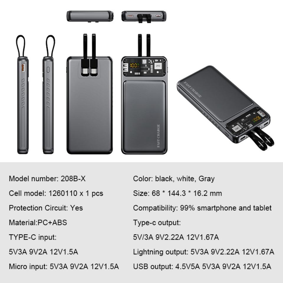 De carga rápida, De alta capacidad, Con cable, Portátil, LED pantalla