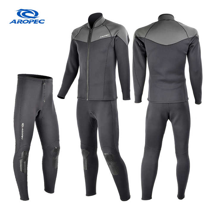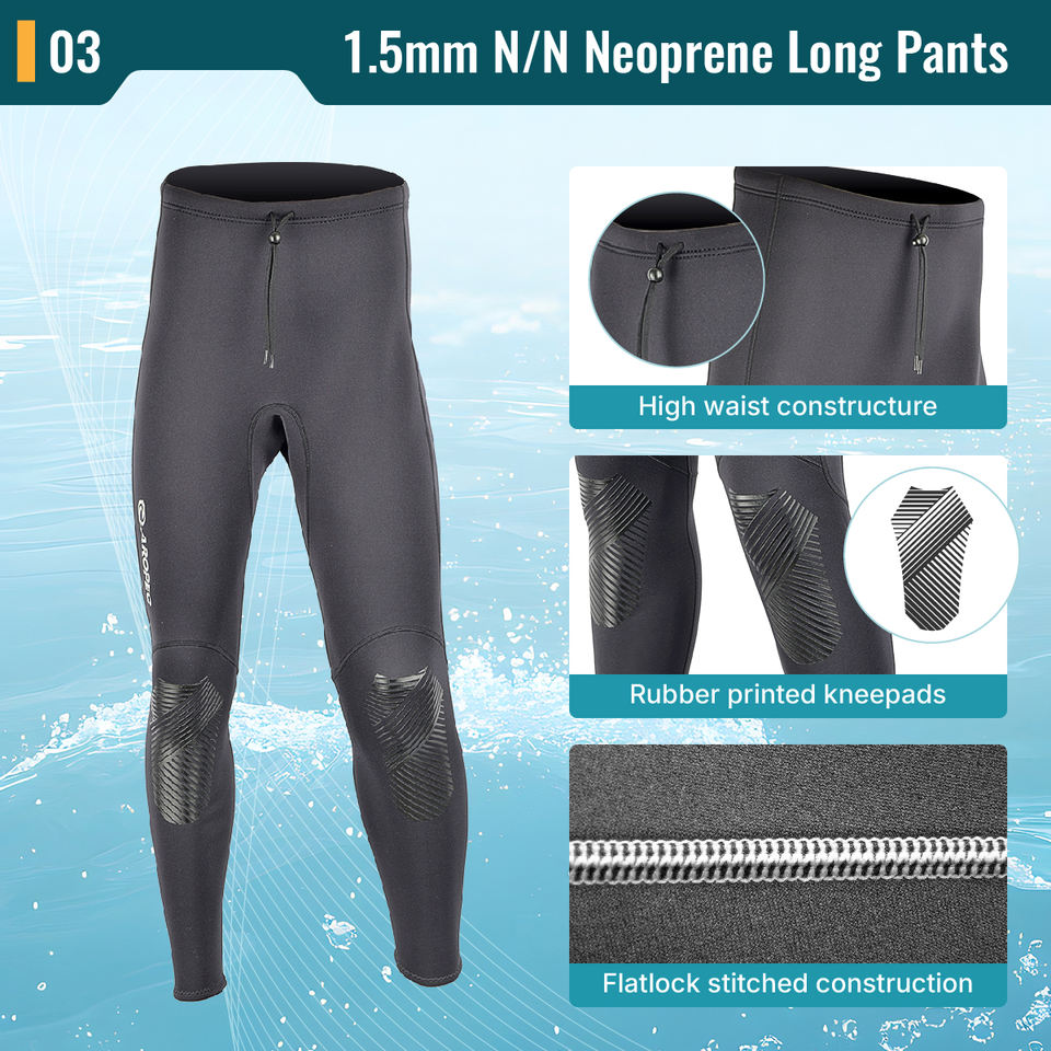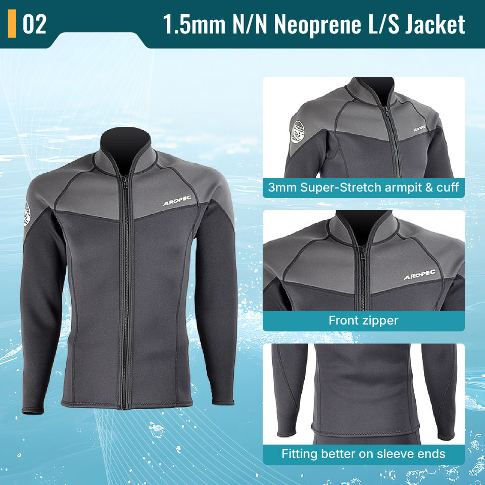 Traje de Neopreno de 2 Piezas para Hombre, Personalizado OEM/ODM, de 1.5mm, con Estampado, Cremallera Frontal en el Pecho, Chaqueta de Manga Larga y Pantalones con Protección UPF 50+ Anti-UV