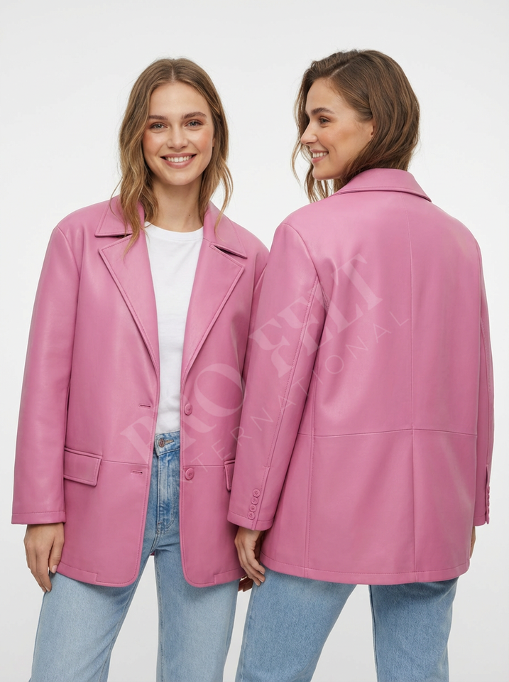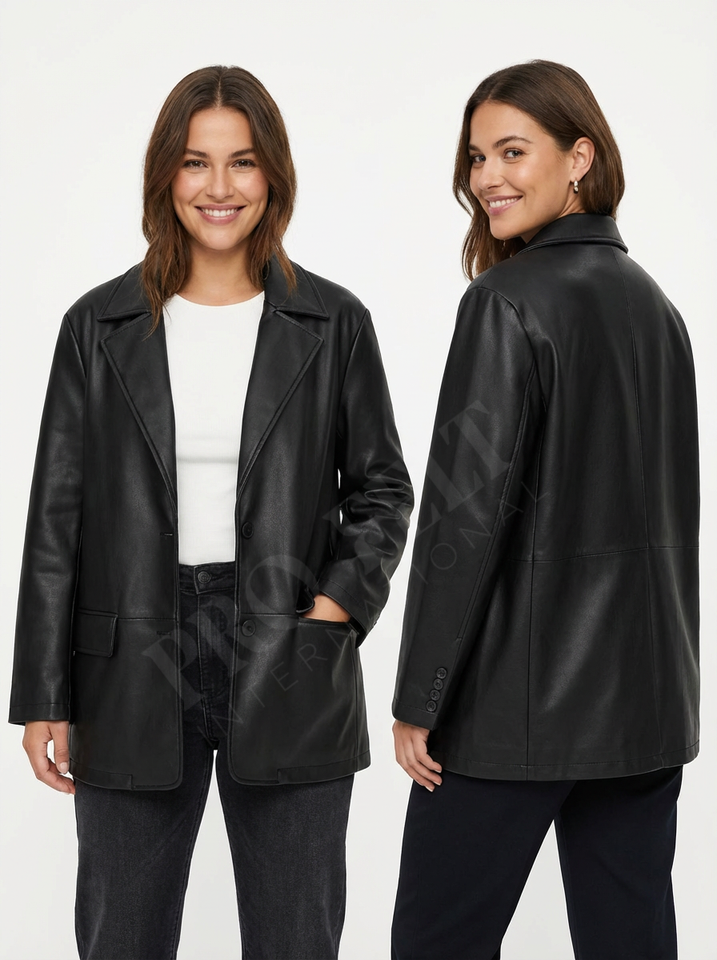 Chaqueta Blazer de Cuero Genuino Personalizada OEM ODM, Botones en la Parte Delantera, Estilo Casual de Invierno, Abrigos Cortos de Cuero de Alta Calidad para Mujer