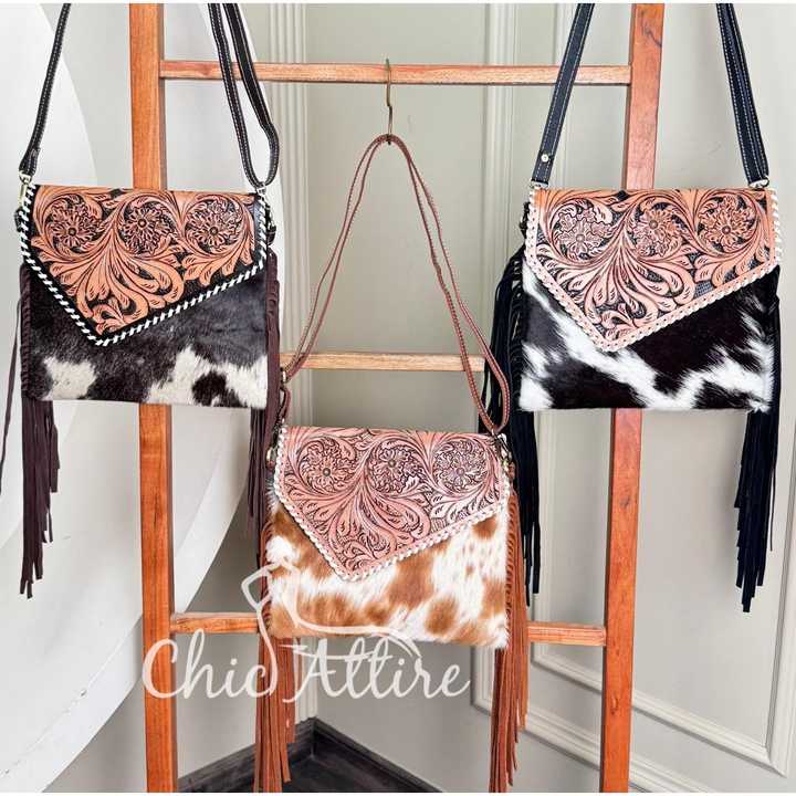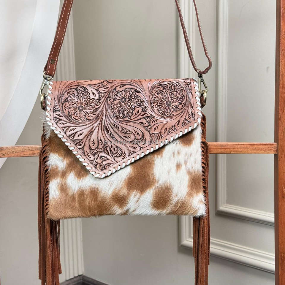 Product name:Hand Tooled Cowhide Leather Fringe Crossbody Bag