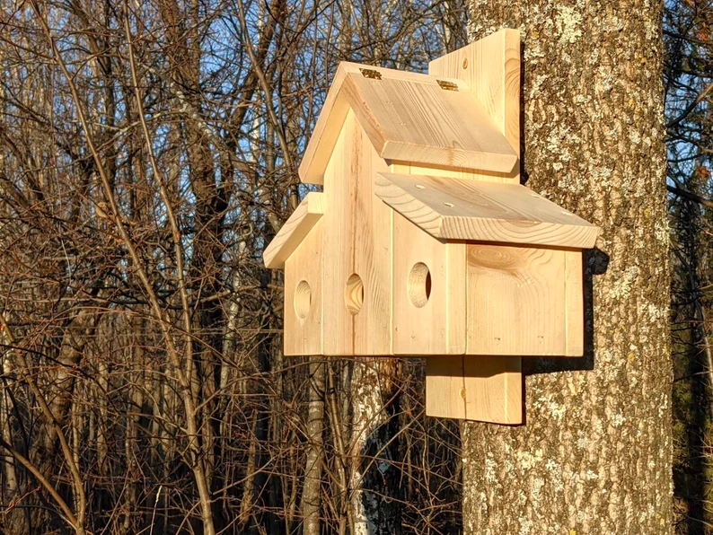 Nido de Casa de pájaros de invierno doble respetuoso con el medio ambiente OEM ODM, sitio de anidación de madera para Bluebirds y Chickadees para dueños de mascotas