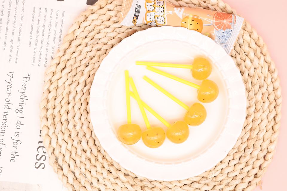 Fábrica OEM/ODM, Venta al por Mayor, Caramelos Esféricos Personalizados con Jugo de Frutas Lácticas y Semillas de Chía, Sabor Pomelo