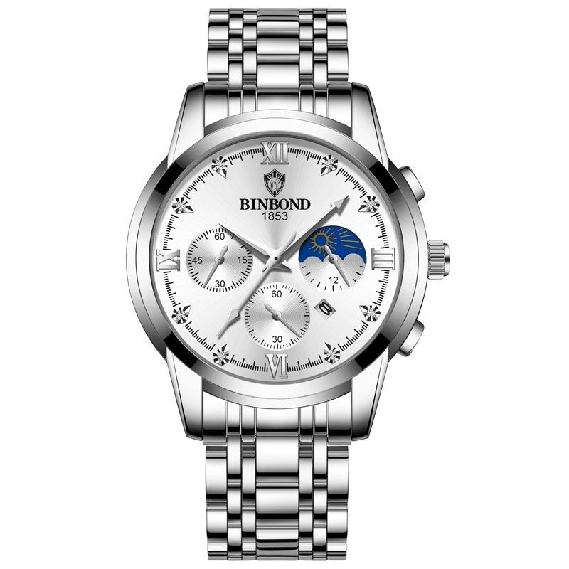 Reloj de Pulsera para Hombre de Acero Inoxidable con Pedrería de Lujo, Diseño OEM ODM, Resistente al Agua, con Fase Lunar Luminosa HD y Calendario, Reloj de Cuarzo