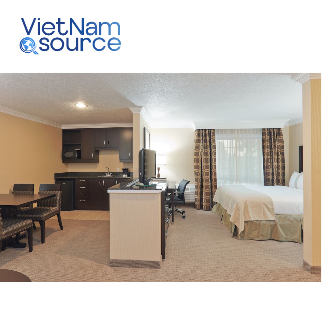 Juego de muebles de dormitorio OEM ODM para cama individual con plataforma de madera moderna para hoteles y villas LaQuinta Project de Vietnam Source