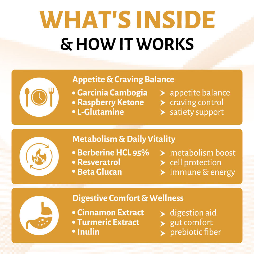 Apoyo a la salud digestiva, Gestión energética, Apoyo a la salud intestinal, Gestión del metabolismoBeneficios del producto