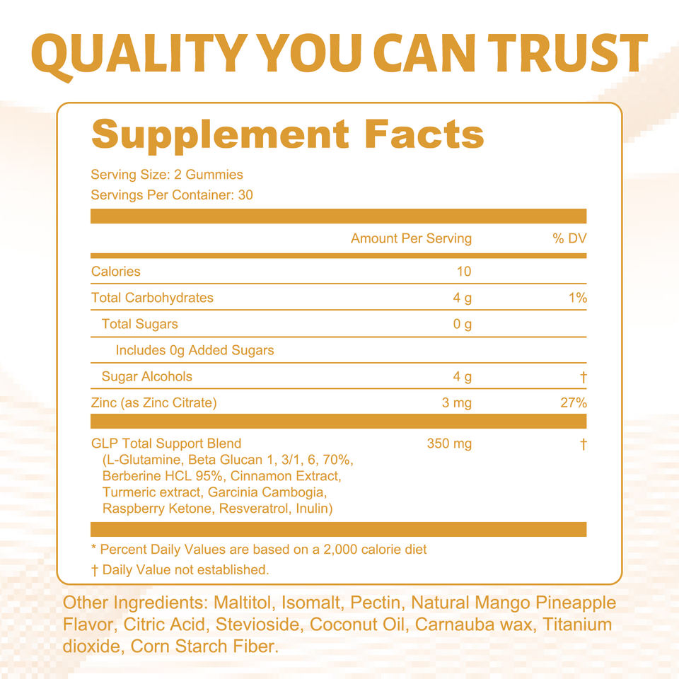 Gomitas de GLP-1 OEM/ODM, Sin Azúcar, Veganas, Sin Gluten, Control del Apetito y las Ganas de Comer en Adultos, Berberina, Canela, Cúrcuma, Quemagrasas