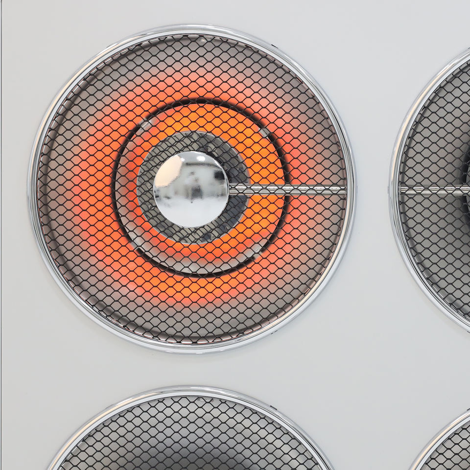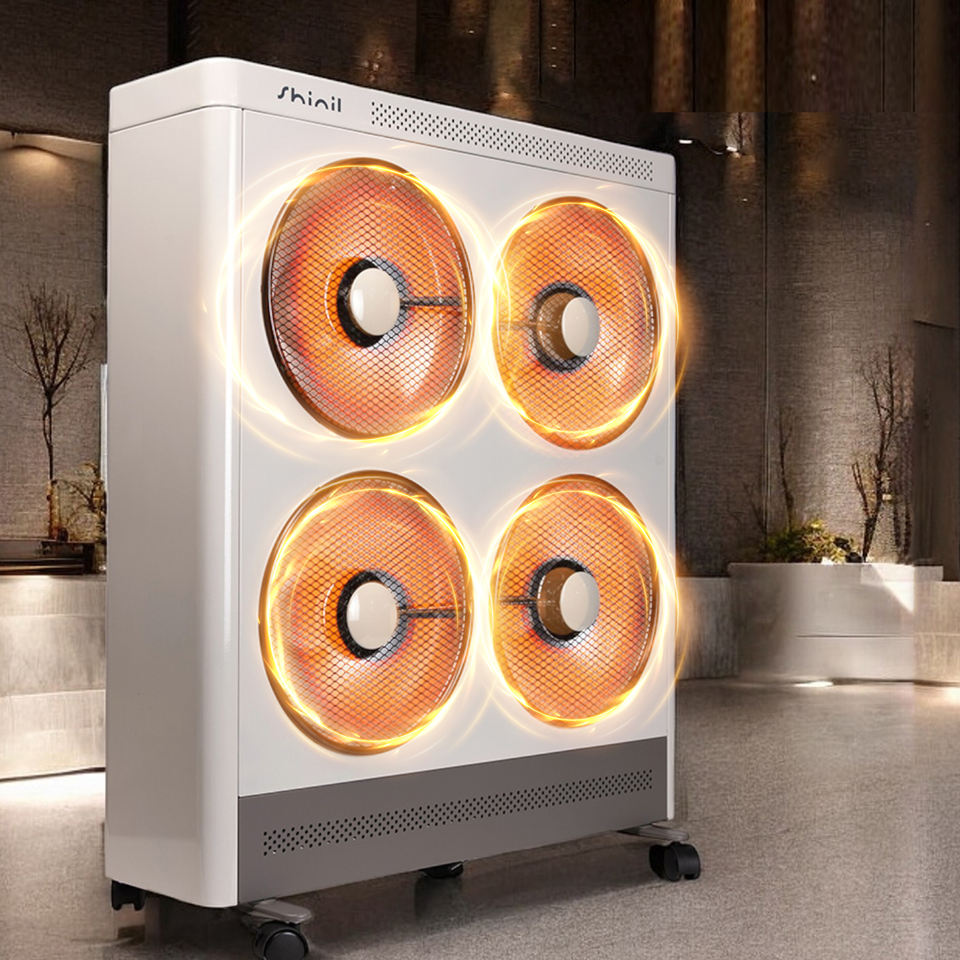Calentador de ventilador de cubo eléctrico con control remoto de 4 quemadores de alta cobertura OEM/ODM, gris marfil, ahorro de energía, portátil para invierno