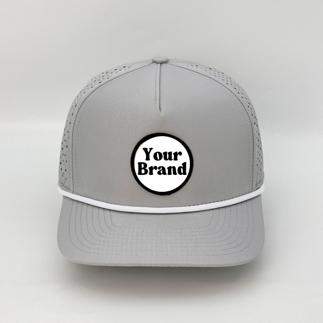 Gorra de béisbol estructurada en blanco de 5 paneles con logotipo personalizado impermeable de poliéster de alta calidad OEM ODM Gorras perforadas cortadas con láser